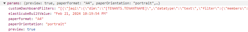 We are currently using an embedded iframe in one of our applications. We programmatically apply filters to the dashboard via query parameters. The dashboard renders and the filters are applied, however, we are unable to export to PDF via the embedded toolbar while these filters are active. Without the filters, the export function works. Looking at the error, it looks like there is an issue with the body of the request, where the "customDashboardFilters" property is still a string and hasn't been deserialized. Are there any ideas on ways around this?