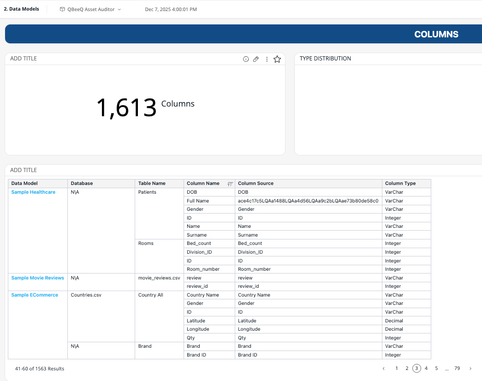 The Asset Auditor is built on Sisense native charts and features, which means that you can easily democratize and share this information using the native sharing options. For example, you could share these dashboards with your Data Desginers and Dashboard Designers and give them full visibility to the underlying models, tables, columns, etc. It's like View-only access...but on steroids!
