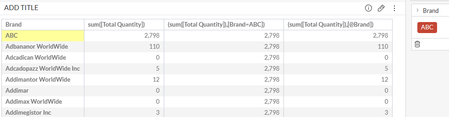 In this scenario we have... the Filtered Measure plug enabled a dashboard with Brand as a filter, set to include only "ABC" a pivot widget with Brand on Rows set to filter as Highlight values for Total Quantity (working as expected) Total Quantity for Brand = "ABC" (working as expected) Total Quantity for @Brand (working as Sisense expects, but not how we'd expect) The "ABC" row is highlighted as being selected in the dashboard filter. As expected per the Active Filters in Widgets Calculation Hierarchy, the [Total Quantity for Brand = "ABC"] value displays the Total Quantity for the Brand "ABC" row on every row, overriding the row-level Brand grouping/filter for every row. Meanwhile, the [Total Quantity for @Brand], which I would expect to filter on "ABC" as per the dashboard filter, fails to override the row level grouping. I would like for the [@Brand] filter to work in exactly the same way as the [Brand = ABC] filter. With that, our clients go easily do cross-over analysis via multi-pass aggregation: For the customers that purchased the Brand on rows, how many also purchased the "ABC" brand. If ECommerce had a Customer ID in it that might look like: SUM ( [Customer ID] , --limited to customers that purchased the Brand of the row IF ( ( [Total Quantity] , [@Brand] ) > 0 , 1 , 0 --count the customers that purchased the selected dashboard filter Brand, "ABC" ) However, per Sisense Support... Filters defined inside a measure (using the Filtered Measure add-on or formula-level filters) are evaluated earlier in the calculation hierarchy and are isolated from the widget row context. This is why your formula-based approach works and produces consistent baseline and overlap results, while relying on the dashboard filter does not. When the same dimension (Brand) is used both on widget rows and as a dashboard filter, the dashboard filter is evaluated in the context of each row. Because of this shared dimensional context, the dashboard filter cannot act as a fixed reference baseline (for example, “ABC”) across all rows.18Views0likes0Comments