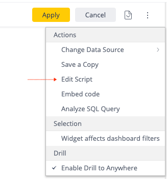 Introduction The code below allows you to color the x axis labels for each category of a bar chart based on the color of a secondary series. It also then hides the secondary series from being plotted. Steps STEP 1 The first step is to create a bar chart widget and add primary and secondary measures (series). STEP 2 Add a conditional color by first clicking on the color button under the secondary series and then clicking on conditional. Set your desired colors, then click OK and ensure bar colors are as intended. STEP 3 Open the widget editor (pencil) and click edit script (options). Paste the following code into the script editor: // The following Script will conditionally color the X Axis labels for series 0 (first value series) // based on the conditional color values specified in series 1 (second value series). // It will then hide series 1 from displaying widget.on('processresult',function (se, ev) { var cats = ev.result.xAxis.categories; // Stores the categories displayed on the X axis var colors = []; // Creates empty color array corresponding to category array for (var i = 0; i < cats.length; i++) { // Stores conditional colors for each element from series 1 colors[i] = ev.result.series[1].data[i].color; } ev.result.series.splice(1,1); // Removes Series 1 ev.result.xAxis.labels.formatter = function() { // Formats each element in series 0 var catIndex = cats.indexOf(this.value); // Searches cats array for each label and creates index if (catIndex > -1) { // If the label value is present in cats array, color label based on corresponding value from colors array catColor = colors[catIndex]; return '' + this.value + ''; // Returns HTML format } else { return this.value; // Returns default format if label is not present in cats array } } }) The secondary series should now be hidden, and the axis labels should be colored accordingly. STEP 4 Hit Save. Refresh the page. Hit Apply. Note: This script may be tweaked to work with other chart types. Enjoy!732Views0likes0CommentsCapture User Filters Then Write Back To MongoDB