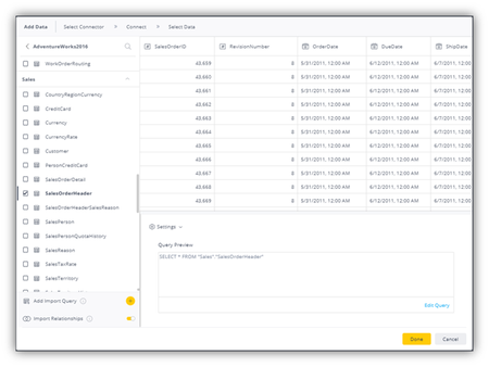 Question LAG & LEAD Functions are functions that give access to multiple rows within a table, without the need for a self-join. The LAG function is used to access data from a previous row, while the LEAD function is used to return data from rows further down the result set. A perfect example of these functions in use is with the “Sales Order” scenario. A department store is trying to monitor the purchase trends of its customers; more specifically, per customer, what’s the average time it took to repeat an order? For us to do so, we must take a record in the table (Order Date) and compare it to another record in the same table. What are some ways we can do that? In our example, we will analyze & compare the efficiency between the multiple solutions. We will start by addressing the problem in the most common/traditional of solving a problem like this. Answer Steps: 1. Create A New ElastiCube Add Data > Microsoft SQL Server > Connect To Server Pull in Sales Order Header Table "How are we going to manipulate that table to get it into a format that we would want to work with?" Uncheck fields that you don’t need; looking for high-level/important data BUILD! 2. Let's Create A Custom SQL Expression What we are getting here a single customer’s activity. It also orders the Order Date in ascending order (from first date to last) "For this specific customer, I want to be able to see __ amount of days between each order. How can we compute / compare those dates? In order to do so, we want to take the order table and join it to itself, where the customer is the same and the order date is offset to the previous or future date." So, let’s start by leveraging the rank function to assign an order number to every date… The Rank function is important here because within the Customer ID, we want to rank based off the order date, group it per customer, and order by the order date. This basically creates create a system that makes it so that it is comparing itself to itself minus 1. This is what sets up our ranking per order. In order for us to join the table to itself, let’s create a sub query and inside of it, put the entire Customer’s table: (Type Of Join:) What it’s getting joined on: Result: 3. Now That We Have The Order Date & The Total Due, We Can Start Subtracting Them Off Each Other & Start Doing Differences Now you would want to go back to the top; the first “Select” of the sub query and change the claims to: Preview: Now that we saw that this function is working, we can now delete our customer filter, order by filter. Now we get all the differences across all of the customers. Issue With This Solution The main issue with this solution is that it requires a lot of processing due to the two tables. Although we are really using one table, we still have two and the same data is repeated between them. This extra storage isn’t necessary, creates the long processing, and can also create confusion for the customer. Solution 2: Doing A Lookup Function On Itself (Own Data Set). To improve upon the last solution, is there a way to pull in one table and do the manipulation in Sisense, without creating a second table? Answer: Yes! What we can do is take the custom table and add it as a view to the source; that way we only import one table Steps: 1. Duplicate "SalesOrderHeader 1", Rename "SalesOrderHeader 2" BUILD! For us to do a look up on this table, we need to have need to have one key to join. The key is a combination of the customer ID + ranking, that’s what makes it unique. 2. So First, Create A New Field, Record_Rank (Int), Input: BUILD Add Data > Custom SQL Table 3. Head Back Into SalesOrderHeader 2, And Set Up The Different Fields To Create The Key + New Field > CurrCustomerRankKey (Text) Do Entire Build 4. Let's Create A Test Function + Custom SQL Expression > Test Function 5. Go Back To SalesOrderHeaders 2 Table, Do Lookup In There + New Field > PrevOrderDate (Date-Time) + New Field > PrevTotalDue (Float) + New Field > DaysBetweenOrders(Int) + New Field > DiffOrderAmount Schema Build: Solution 3: LAG & LEAD Functions This solution does not include a self-join Steps: 1. Open Up SQL Server (TC SQL) Go to same database (Adventure Works 2012) > create new query Let’s start off the new query as: Now we want to dynamically compare one against the other. Instead of doing a self-join, it tells itself to look at the look at the record/number that is above or below and just pull that value in. So it’s almost like a lookup , but it doesn’t require a join , it just requires you to tell it how to sort the data and just dynamically go up and go down and pull the field that you want in to the current record. This is where the LAG & LEAD functions step in To go back a record, we call the LAG function. Within the LAG function, we must define the field that we want to pull in (order date) and how many records back do you want to go (1). Next we want to group by (partition by) and Order By a type of variety and then order it either ASC / DES. To make our “look up” a bit more distinct we can Result: If we want to compare up against future dates, we would use: And its result would be: What we can also pull in the Total Due and calculate the previous Total Due: Which would require a sub query: To get of the first null, we would enter: Pull in everything from t2.* and now we can calculate our differences (Date Diff, etc): As for getting this entire query into Sisense, we want to create a View7KViews0likes0CommentsGet ElastiCube from Process ID